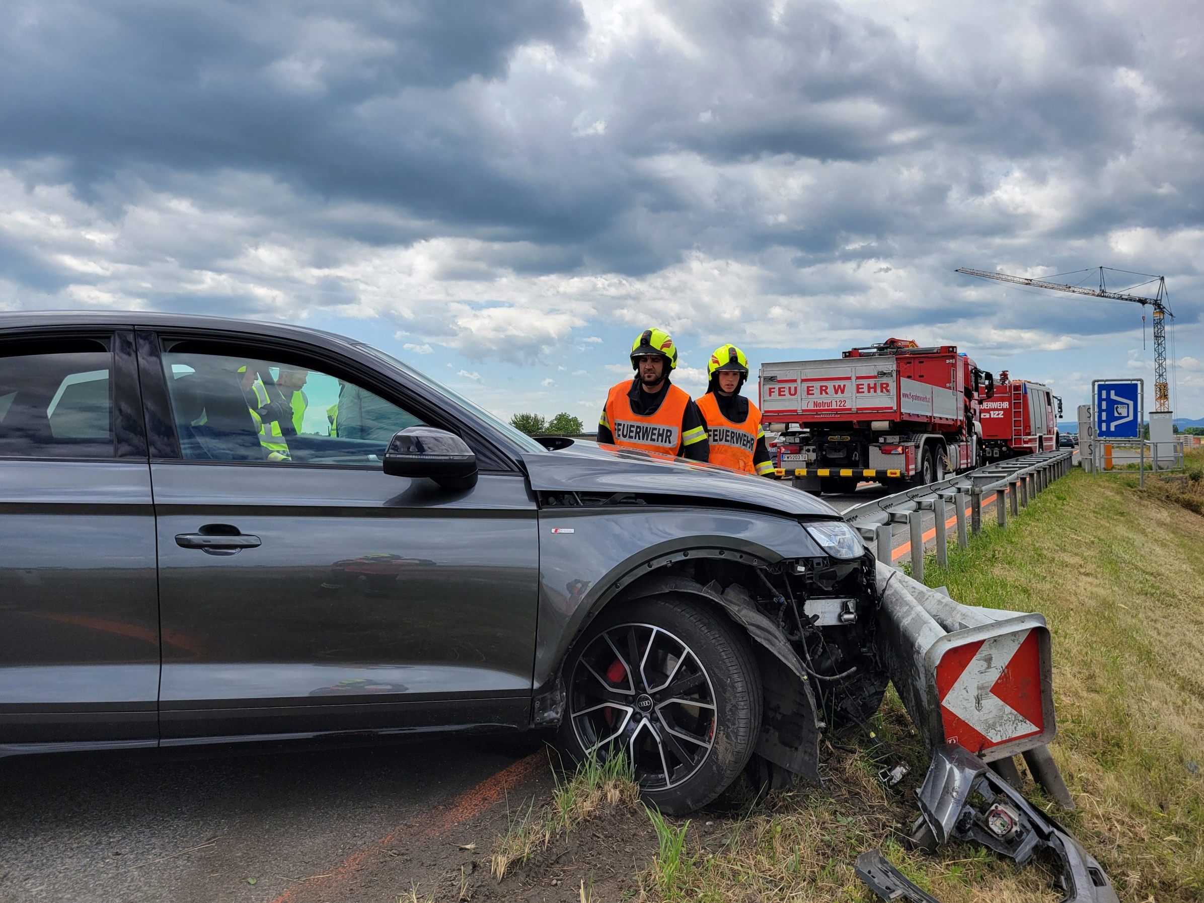 Der Feuerwehreinsatz der Feuerwehr Grafenwörth bei einem Verkehrsunfall auf der S5 in Richtung Krems, im Bereich der Baustelle kurz nach Fels/Wagram,