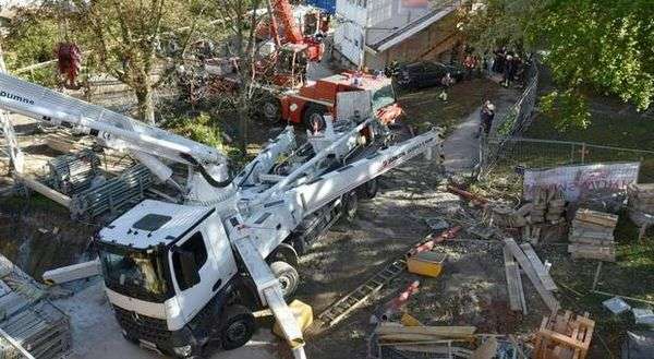 Ein mit einer Betonpumpe ausgestatteter Lkw ist am Donnerstagnachmittag auf einer Baustelle in Wien-Liesing umgekippt und in einem aufwendigen
