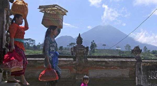 Aus Furcht vor einem Ausbruch des Vulkans Mount Agung haben sich auf der indonesischen Ferieninsel Bali inzwischen mehr als 120.000 Menschen in