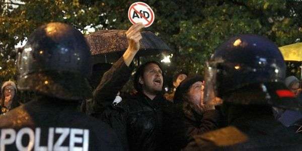 Mehrere hundert Menschen haben am Sonntagabend am Berliner Alexanderplatz gegen die AfD protestiert. Sie versammelten sich vor dem Club "Traffic
