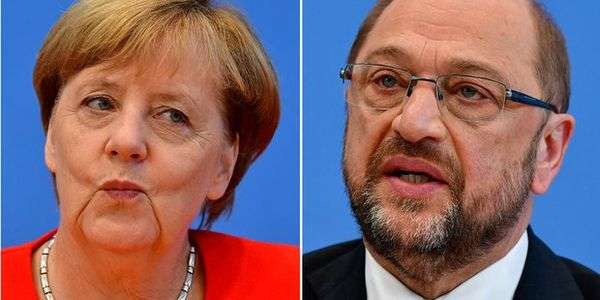 Spannung vor dem einzigen Fernsehduell in Deutschland zwischen Amtsinhaberin und Herausforderer: Kanzlerin Angela Merkel (CDU) und