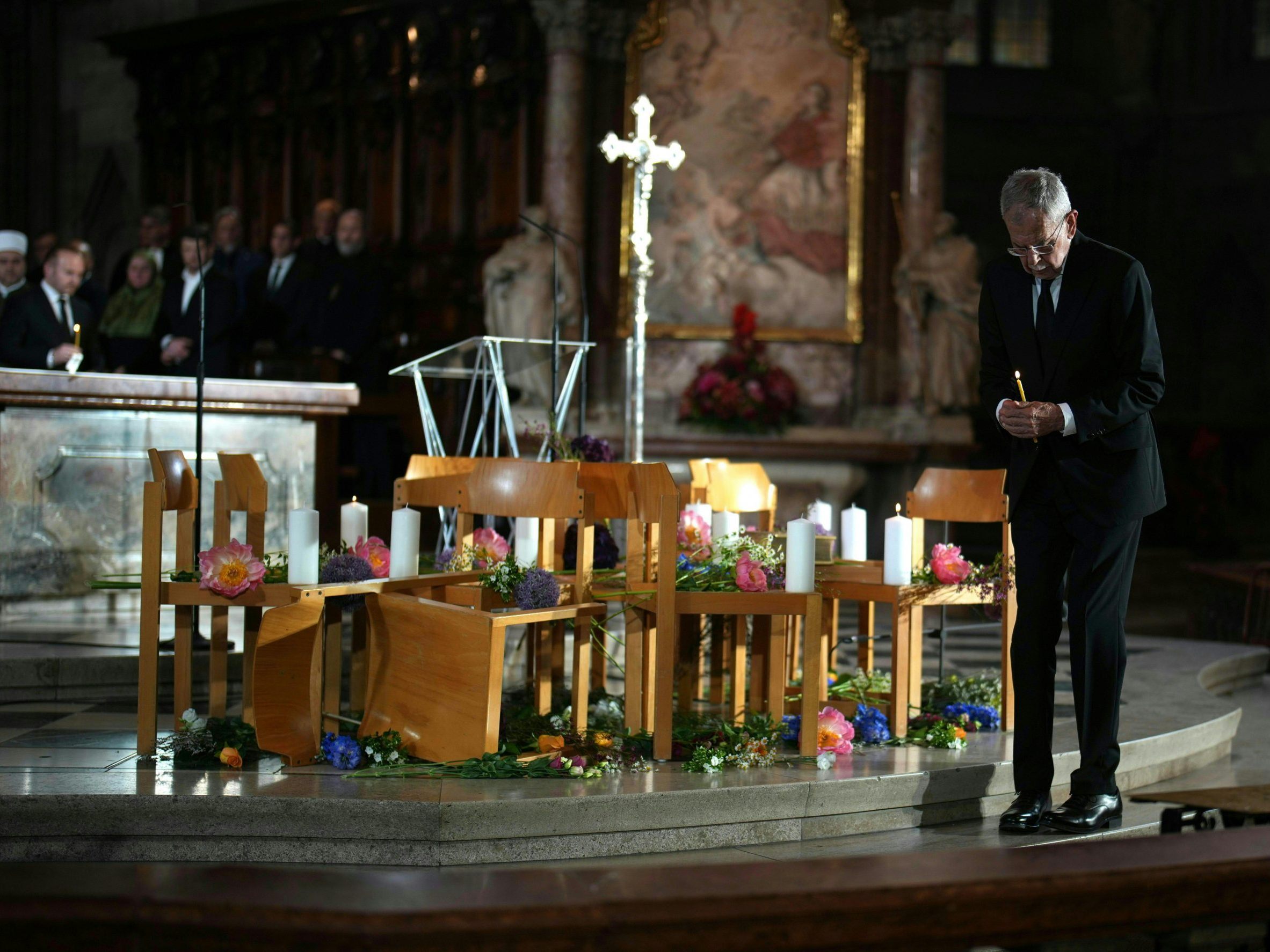 Vertreter aus Politik und Religionsgemeinschaften gedachten am Donnerstagabend im Wiener Stephansdom der Opfer des Amoklaufs in Graz.