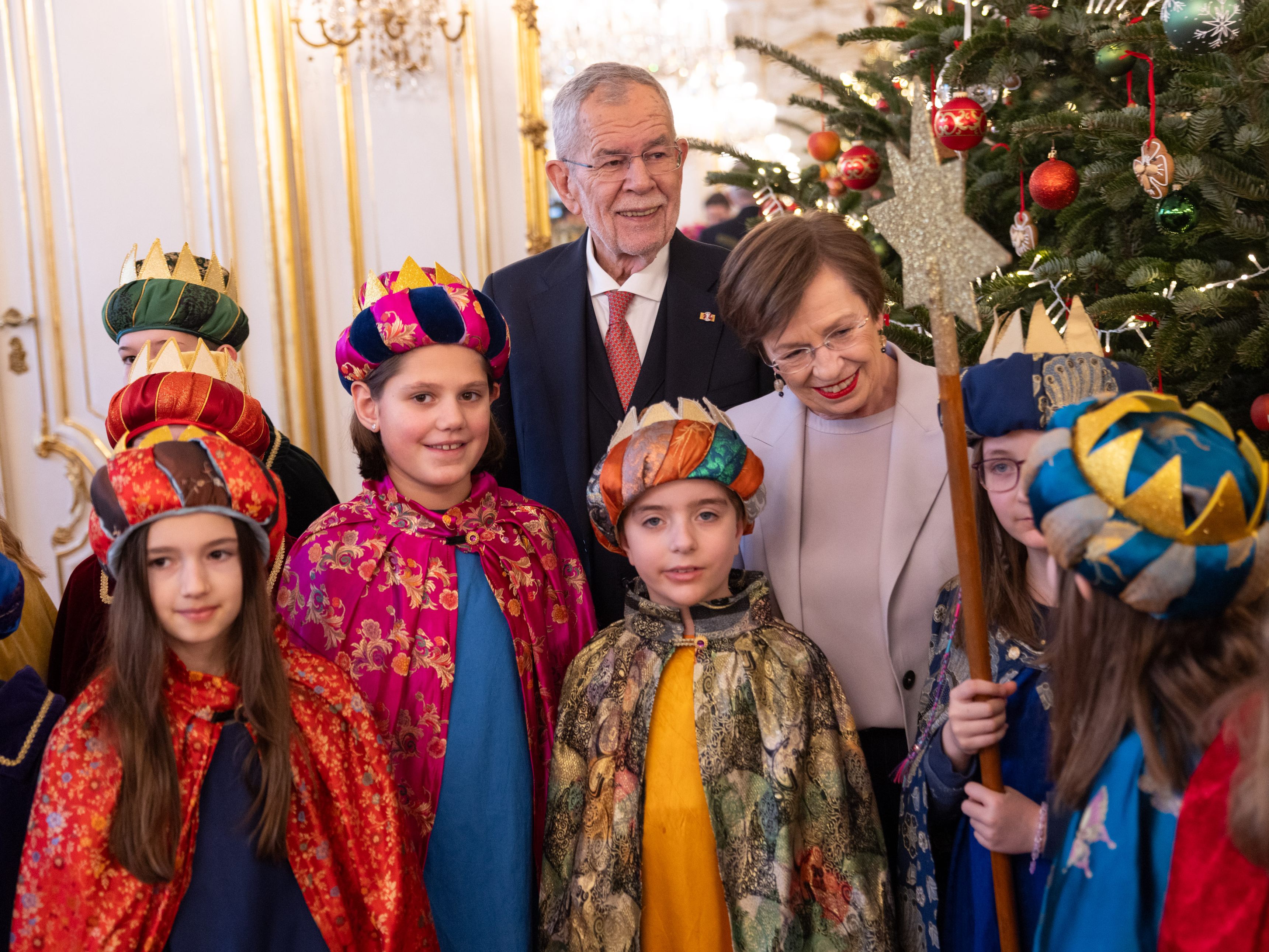 Am Freitag haben mehrere Dutzend Sternsinger Bundespräsident Alexander Van der Bellen und seiner Frau Doris Schmidauer Segensgrüße überbracht.