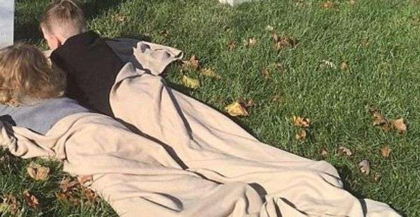 Zwei Buben liegen mit einer Decke umwickelt im Gras und starren auf den Boden. Was aussieht, wie eine ganz normale Situation, geht ans Herz. Bei den