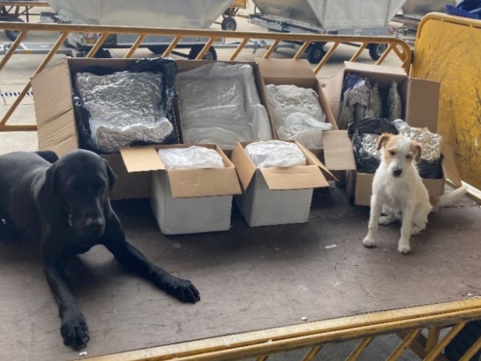 Auf dem Flughafen Wien in Schwechat haben die Polizeidiensthunde "Pitt von Taffatal" und der Zolldiensthund "Pero" insgesamt 23 Postsendungen mit