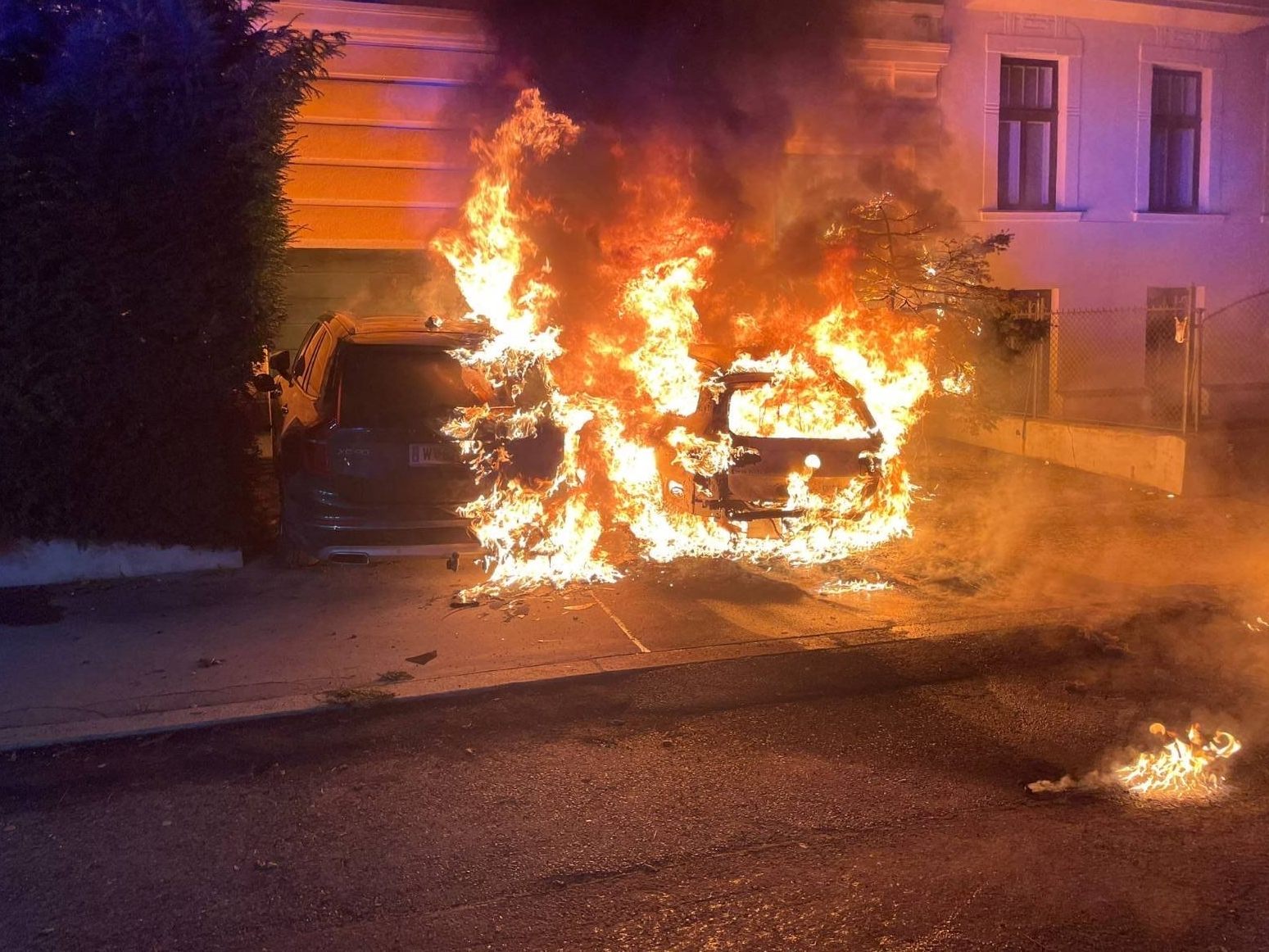 In der Nacht auf Mittwoch kam es zu einem spektakulären Autobrand in Wien-Hietzing.