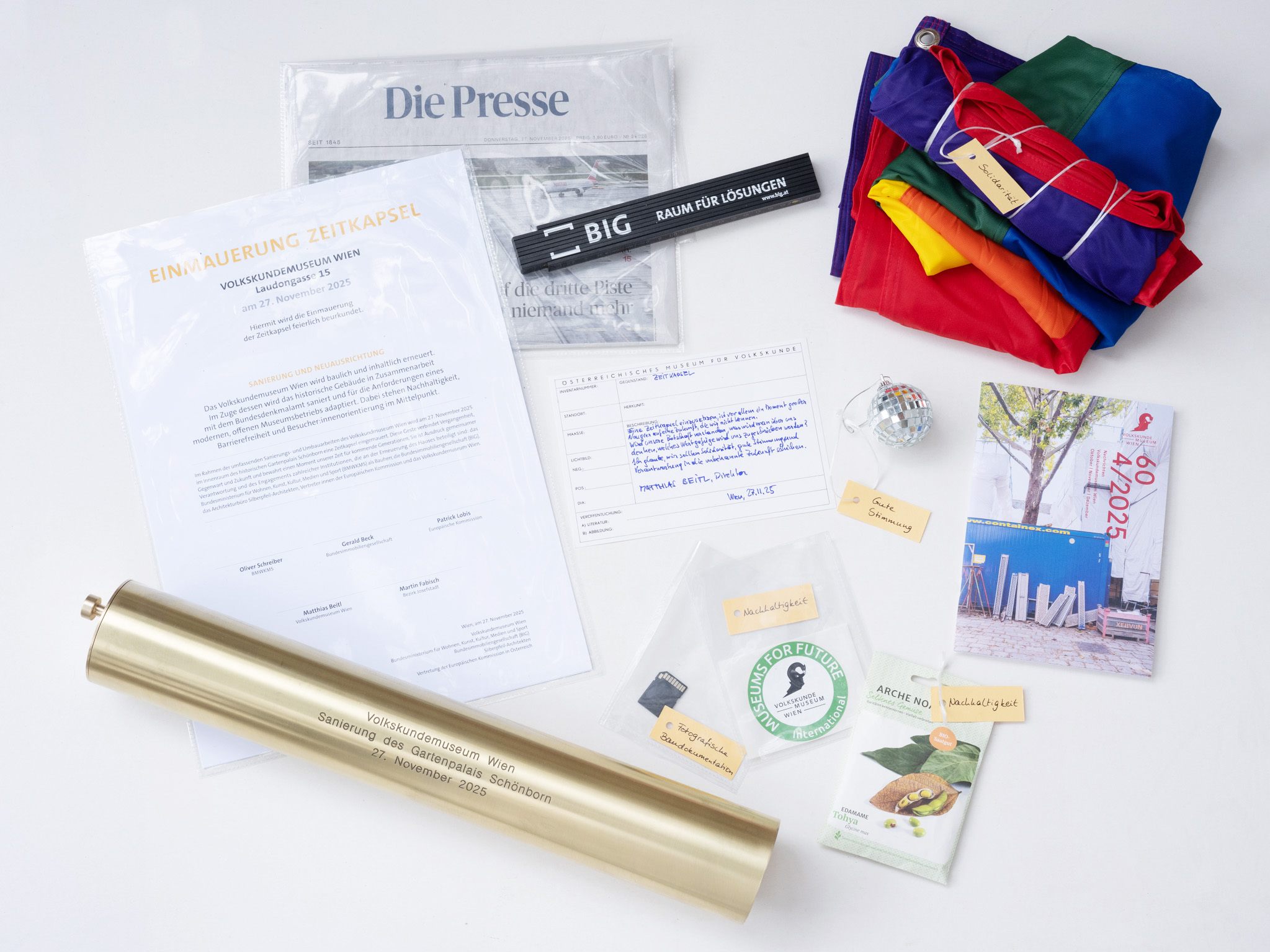 Im Zuge der Sanierung des Wiener Volkskundemuseums ist nun eine "Zeitkapsel" mit mehreren Gegenständen eingemauert worden.