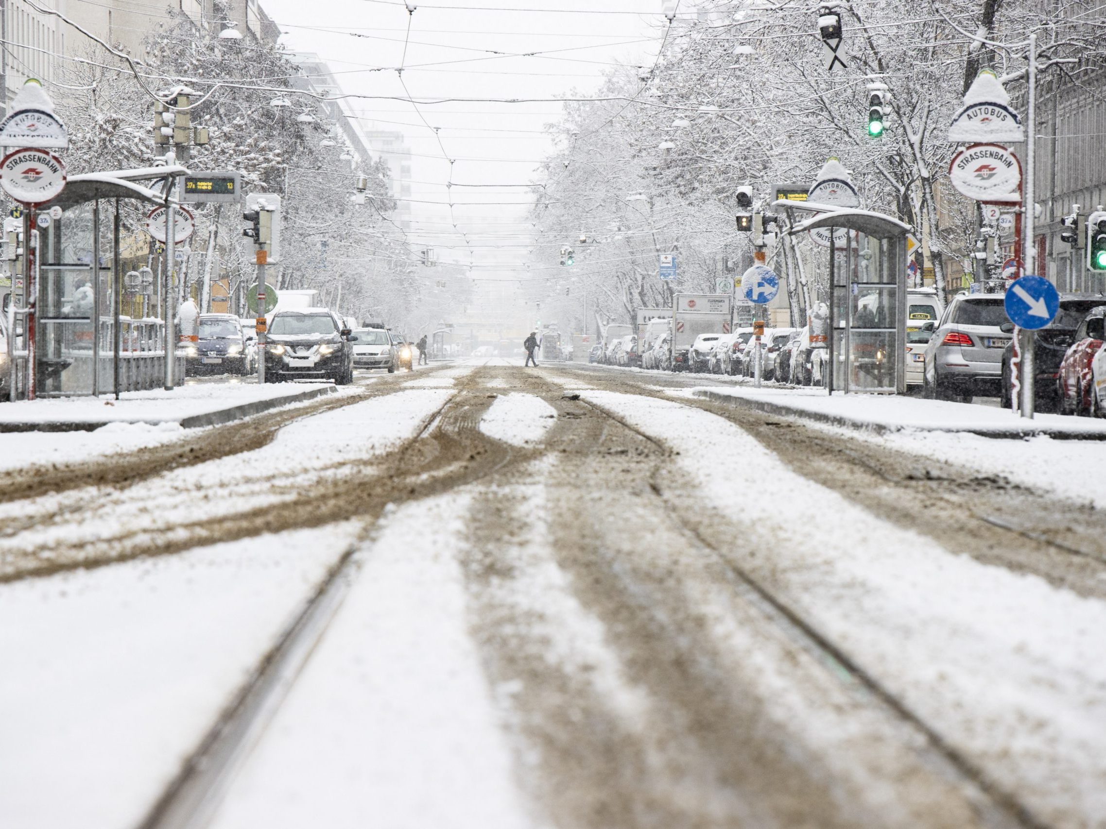 Das Winterwetter sorgt in Wien derzeit immer wieder für Verkehrsbehinderungen und Verzögerungen auf Straßen und bei den Öffis.