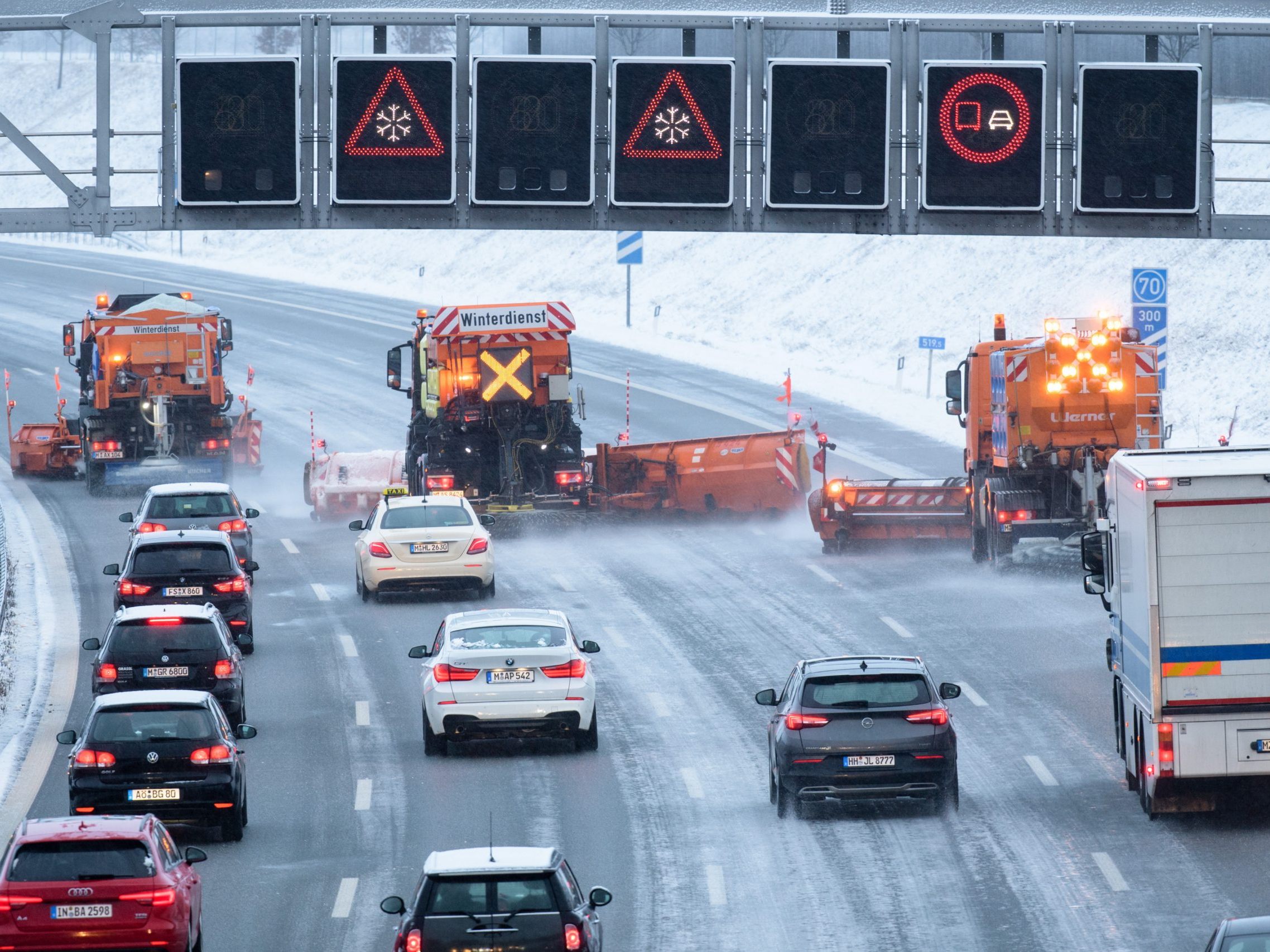 Das Verkehrsgeschehen am Samstag war von Vorarlberg bis nach Niederösterreich geprägt von Schneefällen und Unfällen. Etliche Verbindungen mussten