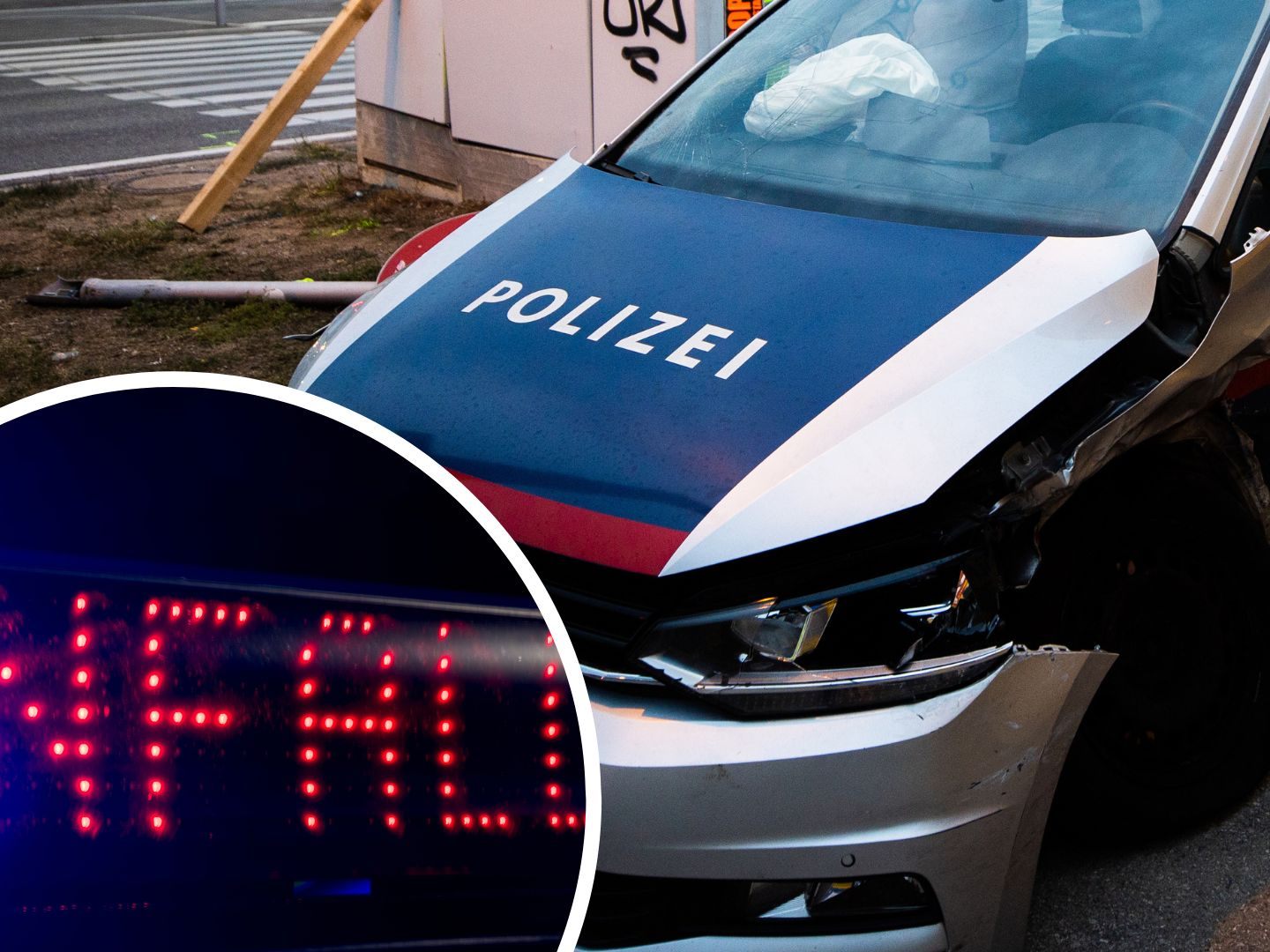 Bei einem Verkehrsunfall in Wien-Rudolfsheim am Freitag wurde ein Polizist schwer verletzt, als das Polizeiauto auf einer Kreuzung mit einem Fahrzeug