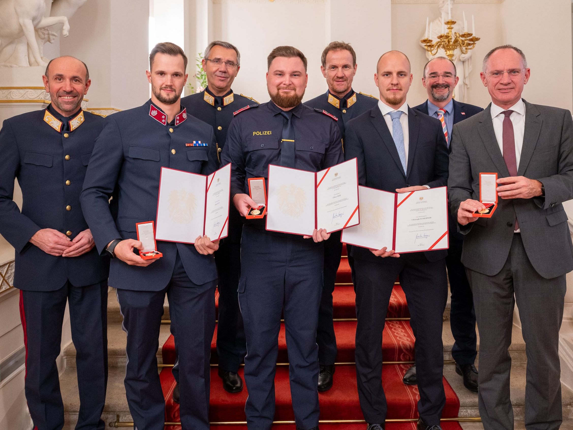 Am Montag wurden mehrere Polizisten der Wiener Polizei von Innenminister Karner als Lebensretter ausgezeichnet.