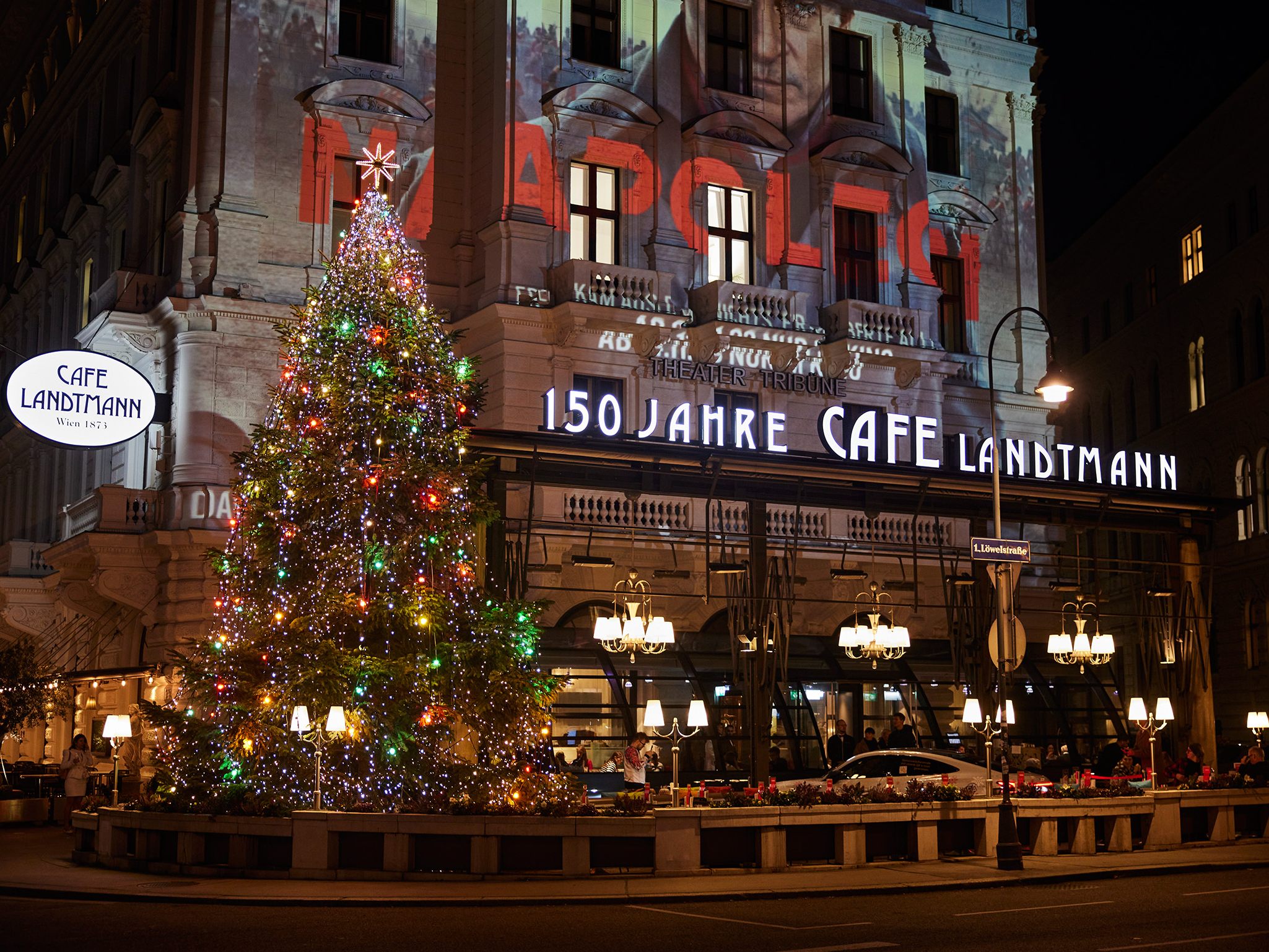 Im festlichen Rahmen wurde am 9. November durch Hausherrn Berndt Querfeld der traditionelle Landtmann-Christbaum in Wien erleuchtet.