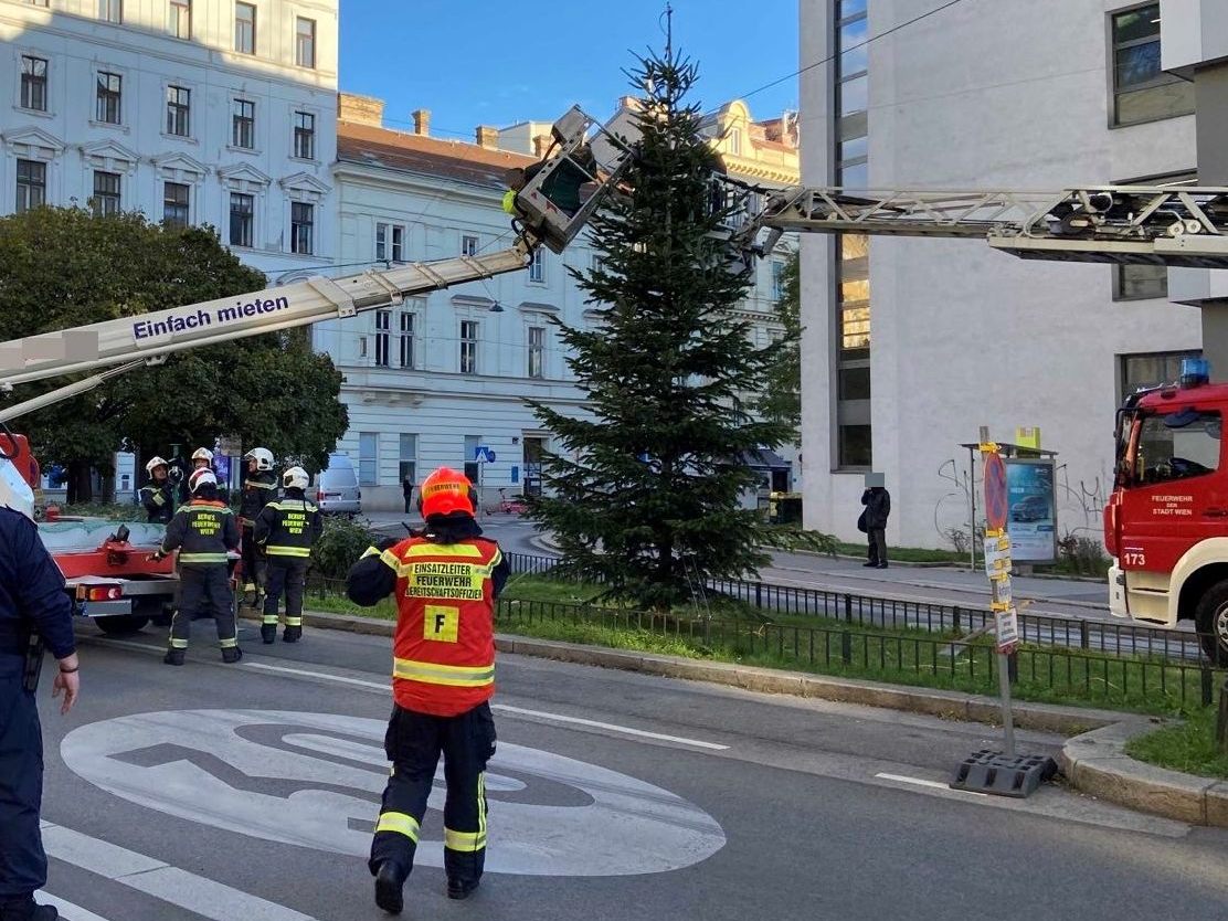 Die Wiener Berufsfeuerwehr musste am Dienstagmorgen am Erzherzog-Johann-Platz in Wien-Favoriten eingreifen, um zwei Personen von einer Hebebühne zu