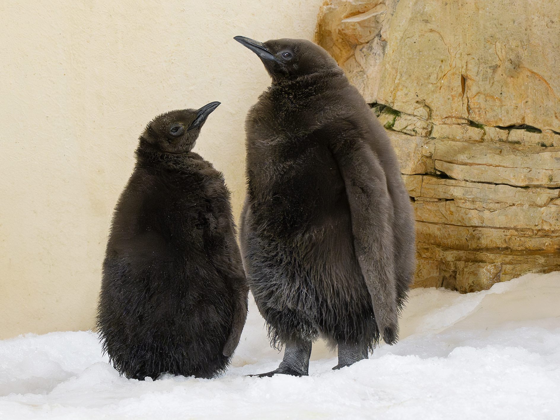 Zwei flauschige Pinguin-Küken sorgen für große Freude im Tiergarten Schönbrunn in Wien, denn die Zucht von Königspinguinen ist nicht unbedingt