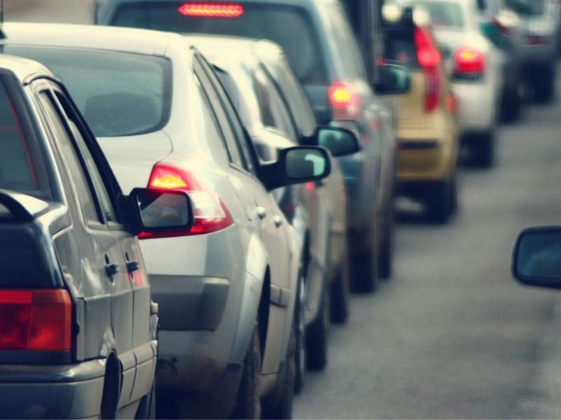 Die Beschreibung des Verkehrs am Wochenende beinhaltet die Wörter Überlastungen, kilometerlange Staus und lange Verzögerungen. Wir haben die
