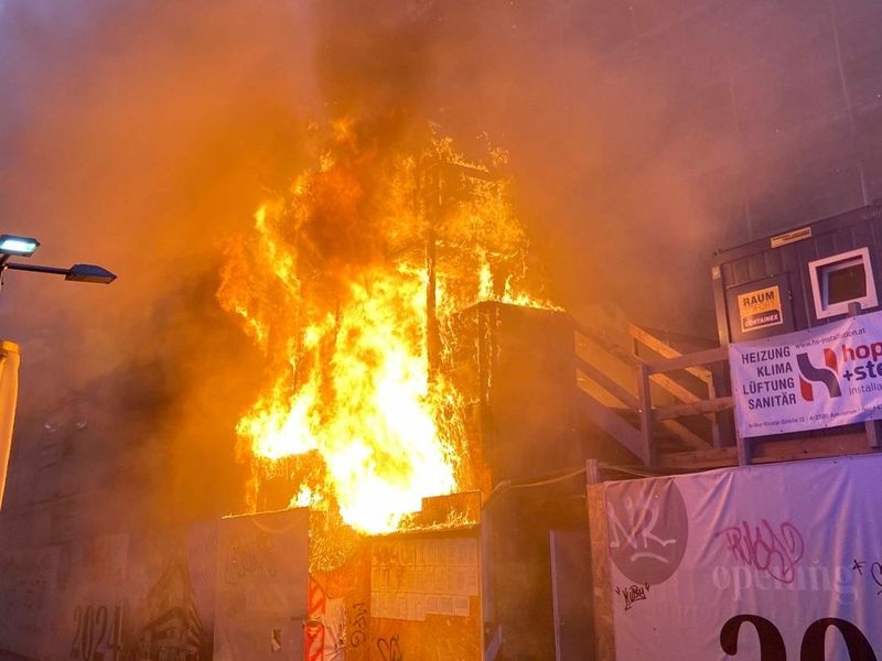 Die Berufsfeherwehr Wien wurde am Dienstag gegen 4:45 Uhr alarmiert, weil Feuer in einem Baustellen-Containerdorf in der Favoritenstraße Ecke